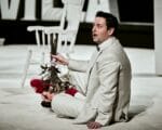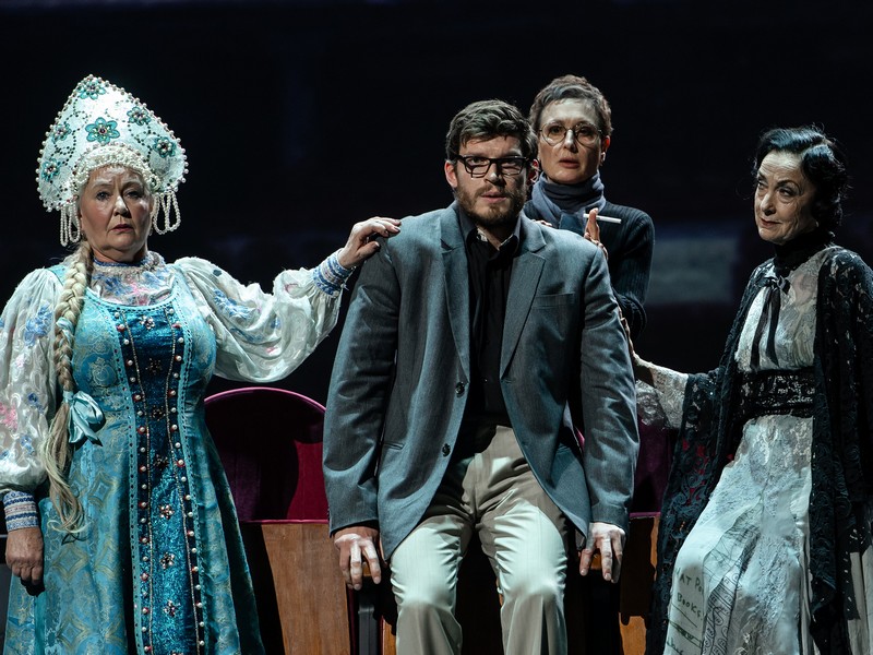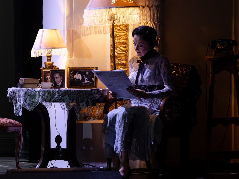 Спектакль действительно завершился своего рода «семейным портретом»: артисты вышли на поклон, часть из них заняла места в зрительном зале на сцене, являвшемся частью декораций постановки. Место рядом с худруком Писаревым, которое должна была занять Алентова, осталось не занятым…