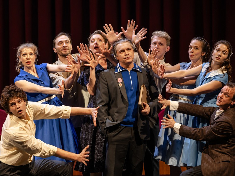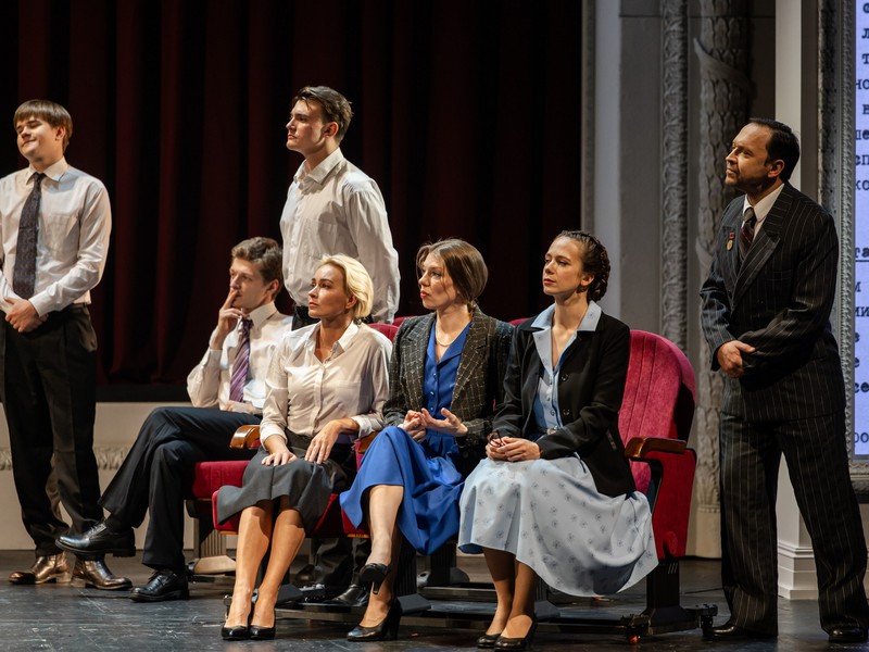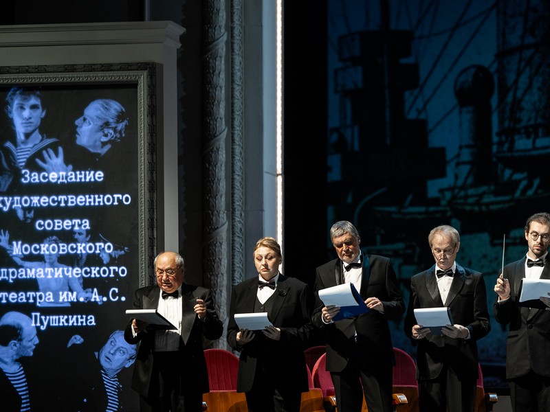 Завершая свою речь, Евгений Александрович обратился к зрителям: «Я сейчас не хотел спойлерить, но в финале нашего вечера вся труппа пушкинцев сядет в эти кресла – вроде как семейная фотография. Я хочу сказать, что место Веры Валентиновны никто никогда не займет. И сегодняшний спектакль мы играем в память о ней – в честь ее».