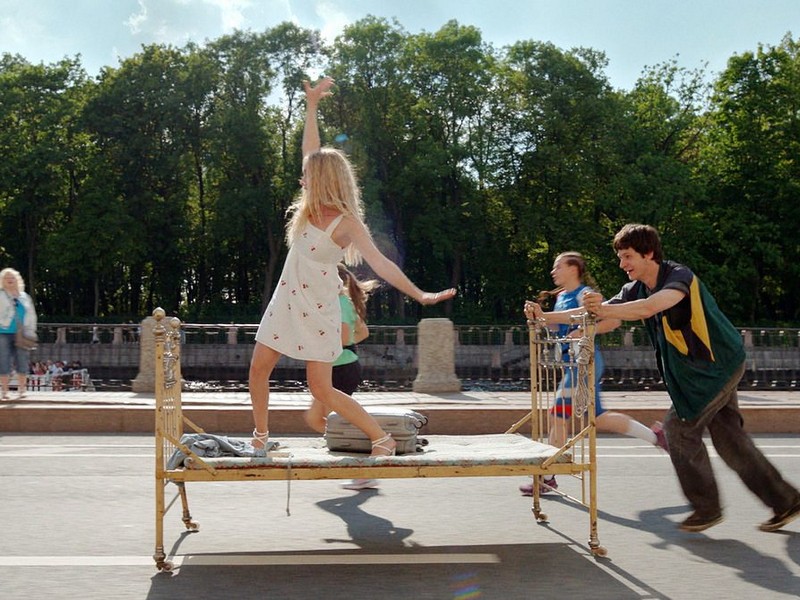 Рюкзак с деньгами и документами украли. Лиза от безысходности заходит в первый попавшийся питерский дворик и садится на кровать. Припаркованная у давно не видевшего ремонта подъезда антикварная кровать?.. А что, собственно, такого особенного для такого города?