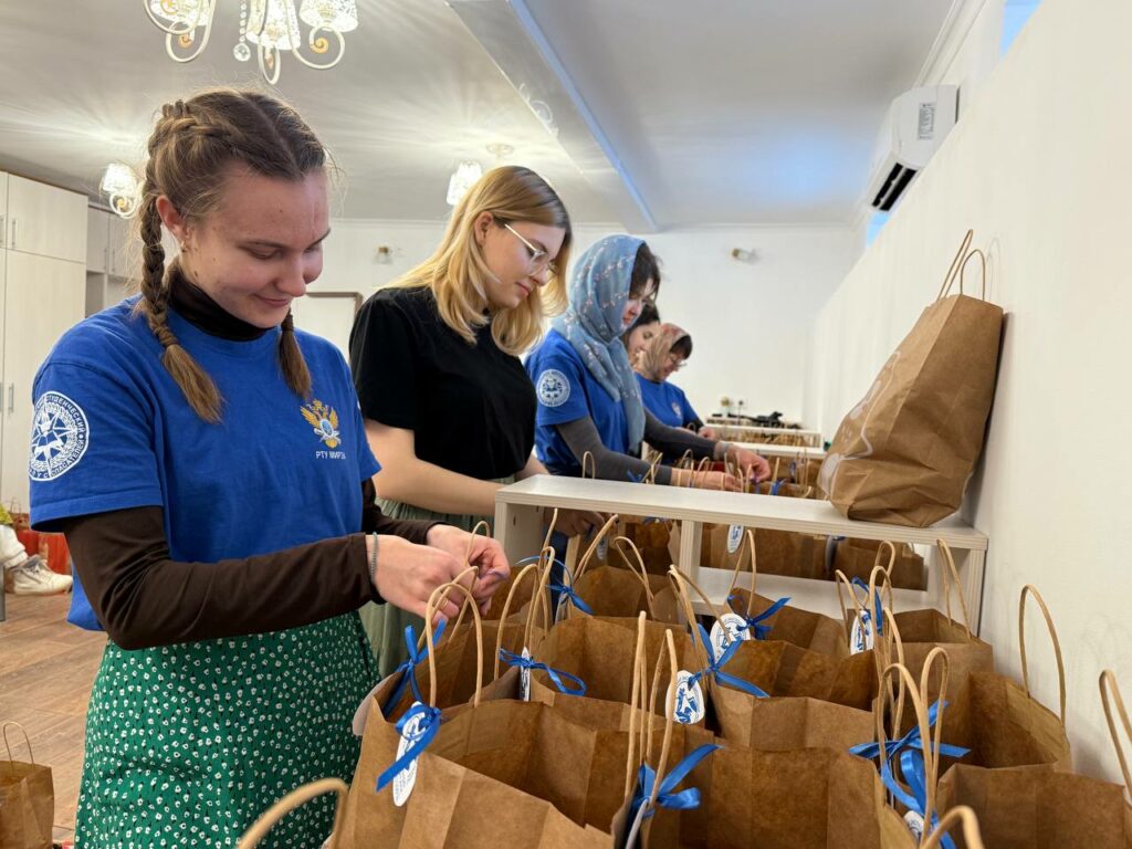 В этот раз студенты привезли с собой больше тонны фруктов – мандарины, яблоки, груши, гранаты, киви и апельсины, которые оформили в красиво упакованные подарки для детей и сестер монастыря. Также ребята организовали большой праздник для местных детей с Дедом Морозом, Снегурочкой, покорением полярных станций и с танцами. Пришло порядка 120 девочек – воспитанниц монастыря.