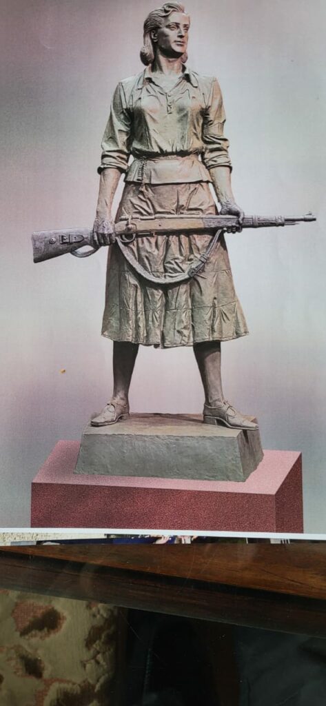 «По договоренности с руководством города Тиль открытие отлитого в бронзе монумента будет приурочено к дате освобождения Франции. Надеемся, что произойдет оно с участием белорусской и российской дипмиссий в этой стране. Памятник в виде трехметровой женской фигуры с карабином в руках установят на месте, где находился концлагерь Эрувиль, из которого бежали его узницы. В этом лагере нацисты в рудниках развивали мощности подземного завода по производству реактивных ракет «Фау», которыми обстреливали Великобританию. Для многих эти шахты стали братской могилой… Сегодня, когда правда о Великой Победе подвергается ревизии и искажается, нам нужно вместе, сохраняя прежние, находить и создавать новые мостики, которые сближают людей и народы».