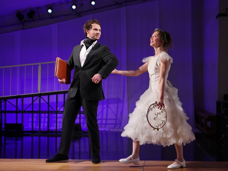 Герой на сцене ШДИ сентиментален, мечтателен и раним. Встретив Настеньку и выслушав ее рассказ о жизни, которая по сравнению с жизнью Мечтателя очень бурная, попадает в западню белых ночей. А знакомство с бабушкой (Алина Чернобровина) и Матреной (Ирина Хмиль) – экстравагантными и очень оригинальными барышнями – только добавляет герою поводов для размышления. И вот уже спектакль перестает быть «сентиментальным», а становится авантюристическим. Далее зрителя ждут «приятные неожиданности», талантливо и артистически выверенно «разыгранные» героями постановки.
