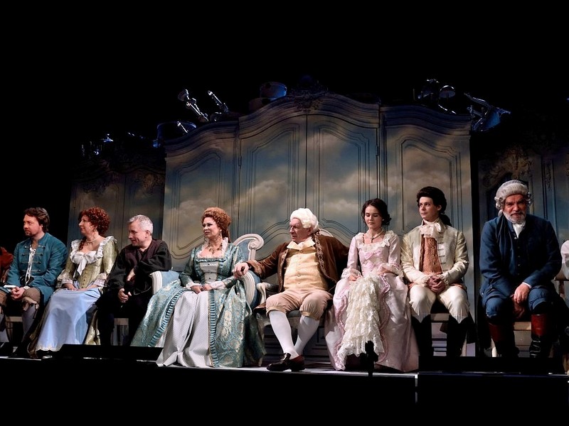 Гениальная режиссура и сценография, потрясающие костюмы, великолепные декорации, уникальная музыка, и главное – профессиональные актеры, которые приняли законы игры, предложенные режиссером. Они играют на грани гротеска и реализма, не пересекая ее, что очень важно. Игра Елены Харитоновой, Владимира Носика и Владимира Дубровского – елей на театральную душу. Мастера Малого театра играют по классике, душой и сердцем, с любовью к зрителю.