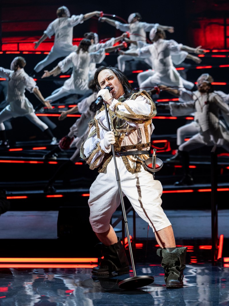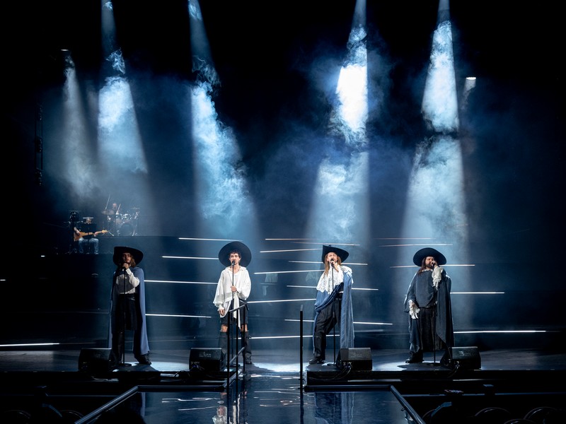 Постановка действительно напоминает концерт, где вместо конферанса – события, интриги. Повествование мчится в ритме песен, танцев (хореограф Егор Дружинин), фехтовальных трюков. Великолепна сцена дуэли д’Артаньяна с мушкетерами и затем с гвардейцами. Зал заливается смехом, когда Рошфор с чисто мАсковским говором прерывает встречу: «Эй, мушкетеры!». Итак, все решено, мы деремся! Но – секунду – Арамис еще не спел свою песню!