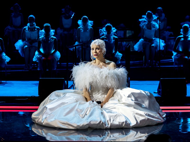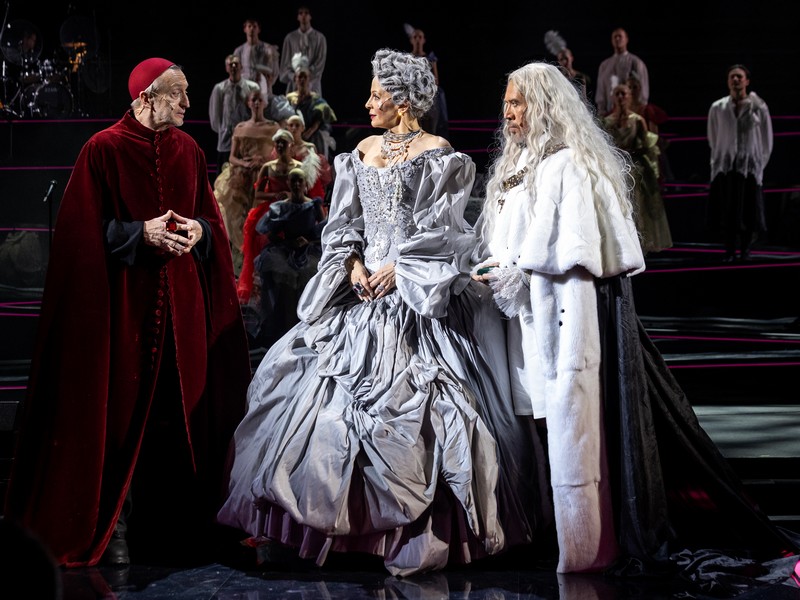 В спектакле много эффектных сцен, неожиданных, но органичных, подстегивающих действие (одна чечетка секси-монашек чего стоит!). Этому помогает не только живая музыка, но и вся сценография (художник Анастасия Бугаева), декорации и костюмы (Евгения Панфилова). Они – настоящий спектакль в спектакле. Взгляд не оторвать от этих фижм, воланов, складок. Хочется рассматривать, расшифровывать психологию героев через такое оформление. И диагональная, пятиэтажная путь-лестница через всю сцену, то озаряемая светом, то меркнущая. И музыканты, поднимающиеся из оркестровой ямы, как полноправные партнеры героев. Много находок и остроумных решений в мюзикле. Много задора, иронии, шуток. Делающих роман, написанный сто восемьдесят лет назад, современнным.