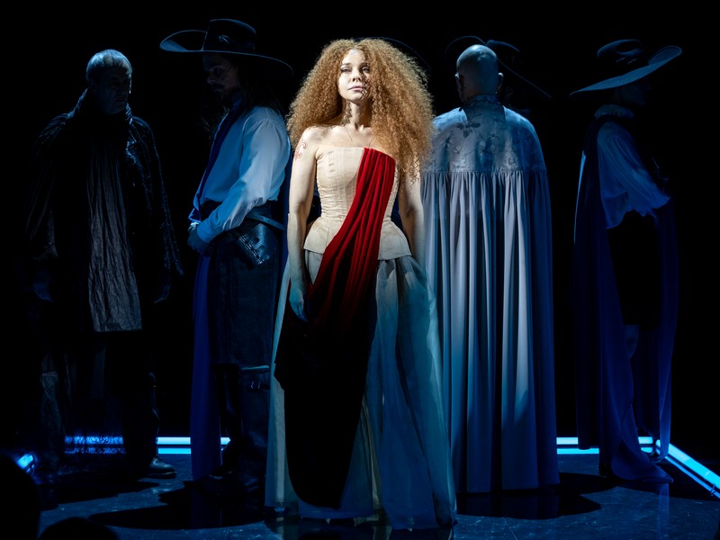 Начинается действо с высокой ноты. В зал выдвинут подиум, на нем шестеро мужчин – мушкетеры, лорд Винтер и палач – судят Миледи. Перечень преступлений чередуется с приговором: «Виновна! Смерть!» Длинные рыжие кудри на ее голове напоминают прическу Маргариты Тереховой в этой роли. Накал не ослабевает, когда затем на подиум выходит де Тревиль с песней страсти, а к нему навстречу через зал спешит юный д’Артаньян, но – стоп, капитану надо разобраться с вчерашней дуэлью, где трое мушкетеров поубивали гвардейцев.