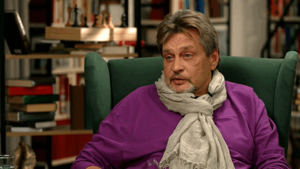 Действительно, Домогарова «зритель видел в самых разных образах», но вот такого Александра Юрьевича лично я не помню: актер показался по-домашнему расслабленным и легко открывался в обычно табуированных для него темах – отношения с «любимой женщиной» или конфликт с упомянутым в анонсе Кончаловским.