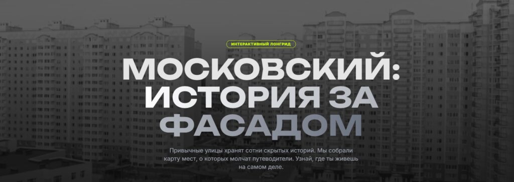 На интерактивном сайте-лонгриде города Московского – этот населенный пункт вошел в состав Москвы в 2012 году и теперь находится в Филимонковском районе столицы – представлена карта с местами, которых не встретить в путеводителях, а также фото, видео и короткие информативные тексты.