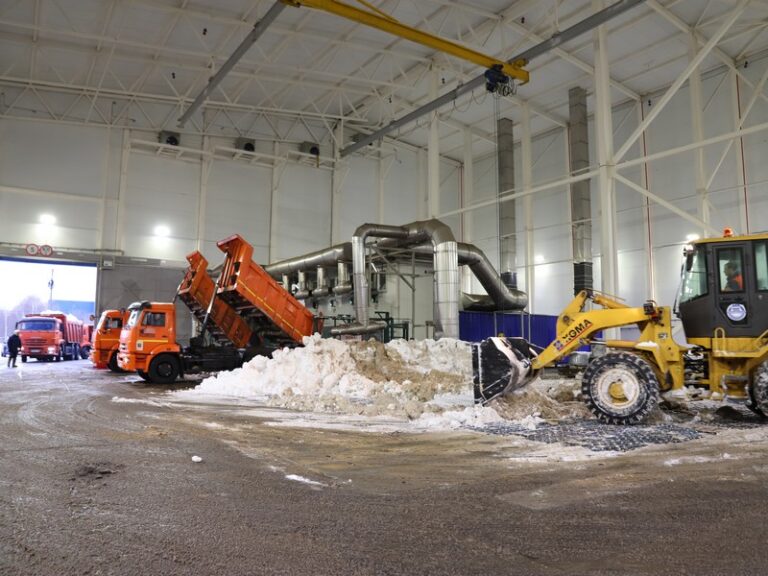 В городе работают более 50 стационарных снегосплавных пунктов. Собранный со столичных улиц снег сбрасывается в приемный бункер, оснащенный сепараторами-дробилками для измельчения, затем попадает в специальный отсек, куда подается сточная вода температурой не ниже 10 градусов. Весь мусор оседает в песколовках, талая вода отводится обратно в канализационный коллектор и уходит в очистные сооружения, где проходит полный цикл механической и биологической очистки.