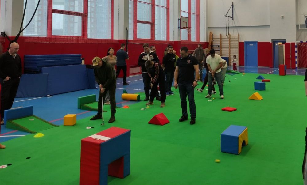 Турнир по мини-гольфу «Гольф для СВОих» состоялся в спортивном зале частной школы «Форум» в Химках.