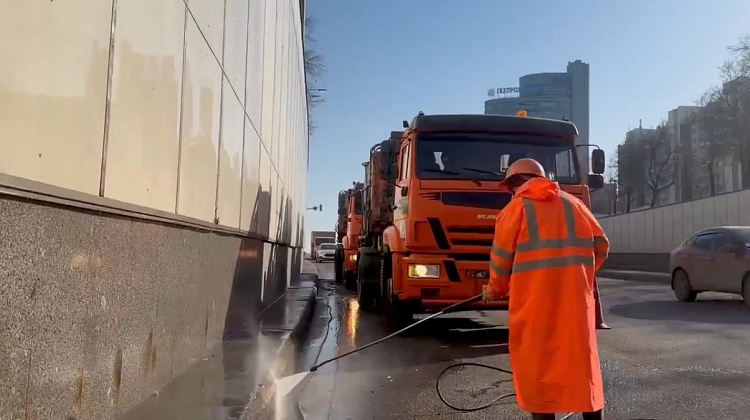 Сотрудники Комплекса городского хозяйства Москвы провели в Центральном административном округе промывку двух объектов после зимы.