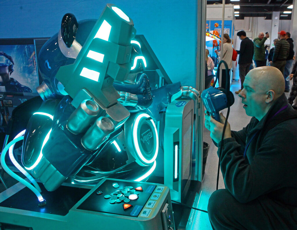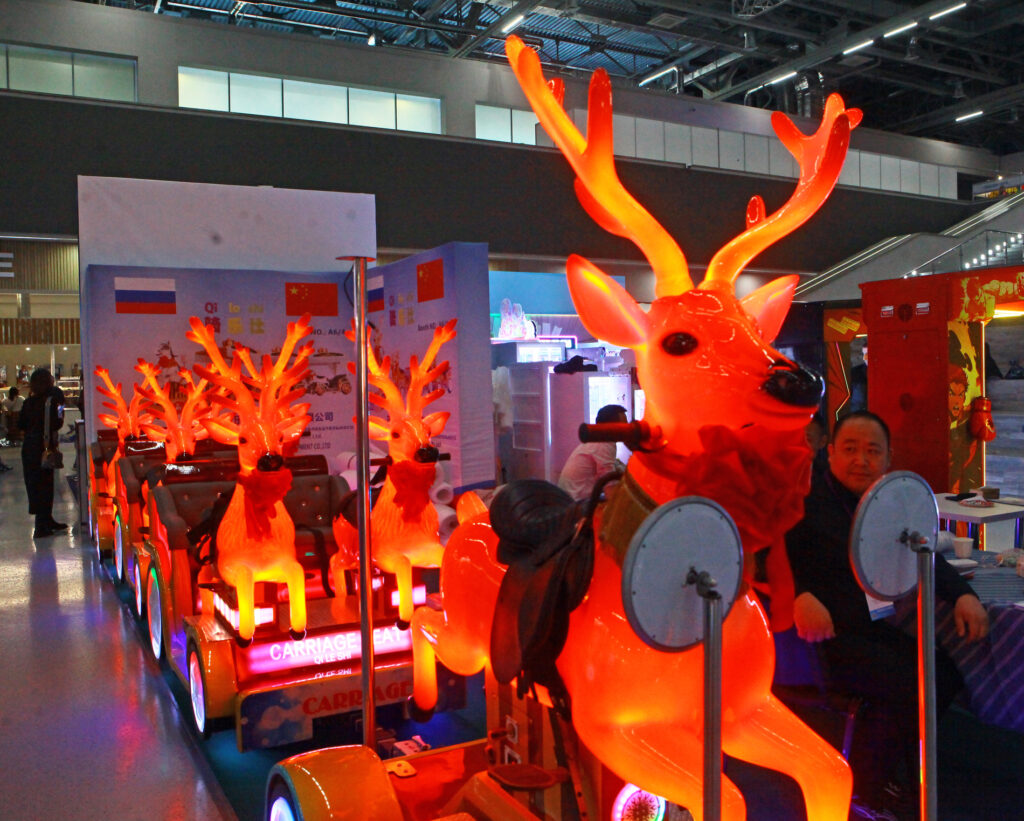 Здесь есть все для веселого отдыха: от старых добрых каруселей с лошадками до лазертага, новейших игровых автоматов и электронных мотобайков. Все новое и технологичное интересно молодой аудитории, ведь дети и молодежь любят креативные, подвижные, высокотехнологичные вещи. Вот, например, китайский аттракцион – автогонки на треке. Эффект полного погружения: умная система имитирует встречный ветер, вибрацию при столкновениях и заносы на виражах. Вообще Поднебесная известнейший лидер по количеству тематических парков в мире, китайцы создают не просто карусели, а целые развлекательные города, с дополненной реальностью и роботами-помощниками. Здесь вложены огромные средства и силы, чтобы создать тот самый «вау-эффект». Если динозавр – то глаза горят, из пасти валит дым, рык на весь зал! Китайские специалисты по развлечениям и аттракционам знамениты на весь мир, в США, Латинской Америке, в европейских странах, например, во Франции, Польше, и сейчас они активно выходят на российский рынок.