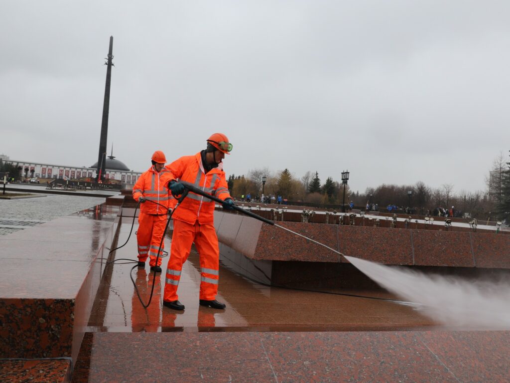 Специалисты Комплекса городского хозяйства Москвы приступили к промывке фонтанного комплекса «Годы войны» на Поклонной горе.