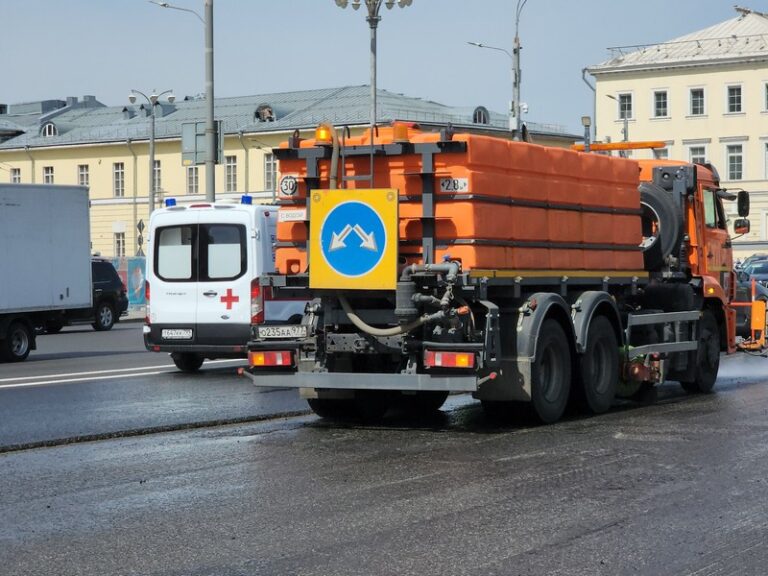 Специалисты Комплекса городского хозяйства традиционно очищают дороги и тротуары весной и осенью. Специалисты используют специальные моющие средства, которые помогают удалить загрязнения, которые не смываются обычной водой.