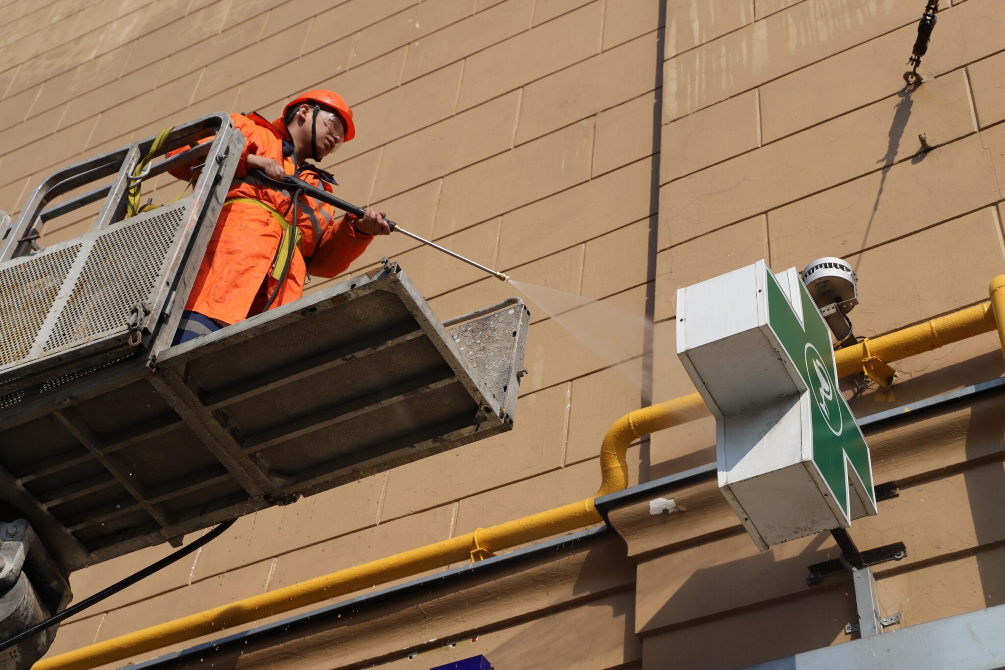 Специалисты Комплекса городского хозяйства приступили к промывке фасадов зданий, расположенных на проспекте Мира