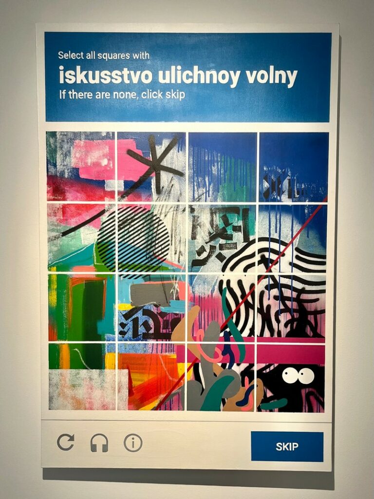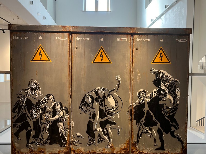 Разноцветный ковер ручной работы с надписью «Понятно теперь, что ты за человек» (автор Кирилл Кто), огромный трансформаторный короб с росписью, отсылающей к картине «Последний день Помпеи» Карла Брюллова (автор Zoom). Одна из работ напоминает капчу, благодаря которой человек, заходя на сайт, может доказать, что он не робот (автор Владимир Абих). Внимание во многих произведениях забирают на себя надписи, порой довольно дерзкие и эпатажные: «Никогда не работай» (автор Осколки), «Прорвемся (автор Кирилл Кто).