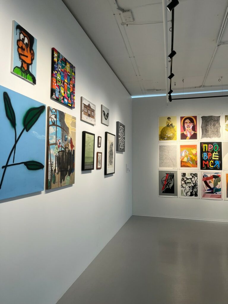 На четырех этажах в абсолютно разных формах и медиумах можно познакомиться с искусством художников, чья практика вышла за рамки терминов «граффити» и «стрит-арт». Они работают и в классических техниках, студийном формате, и сотрудничают с брендами – их деятельность не ограничивается городской средой. По мнению куратора выставки Катрин Борисов, искусство уличной волны «давно перестало быть андеграундным».