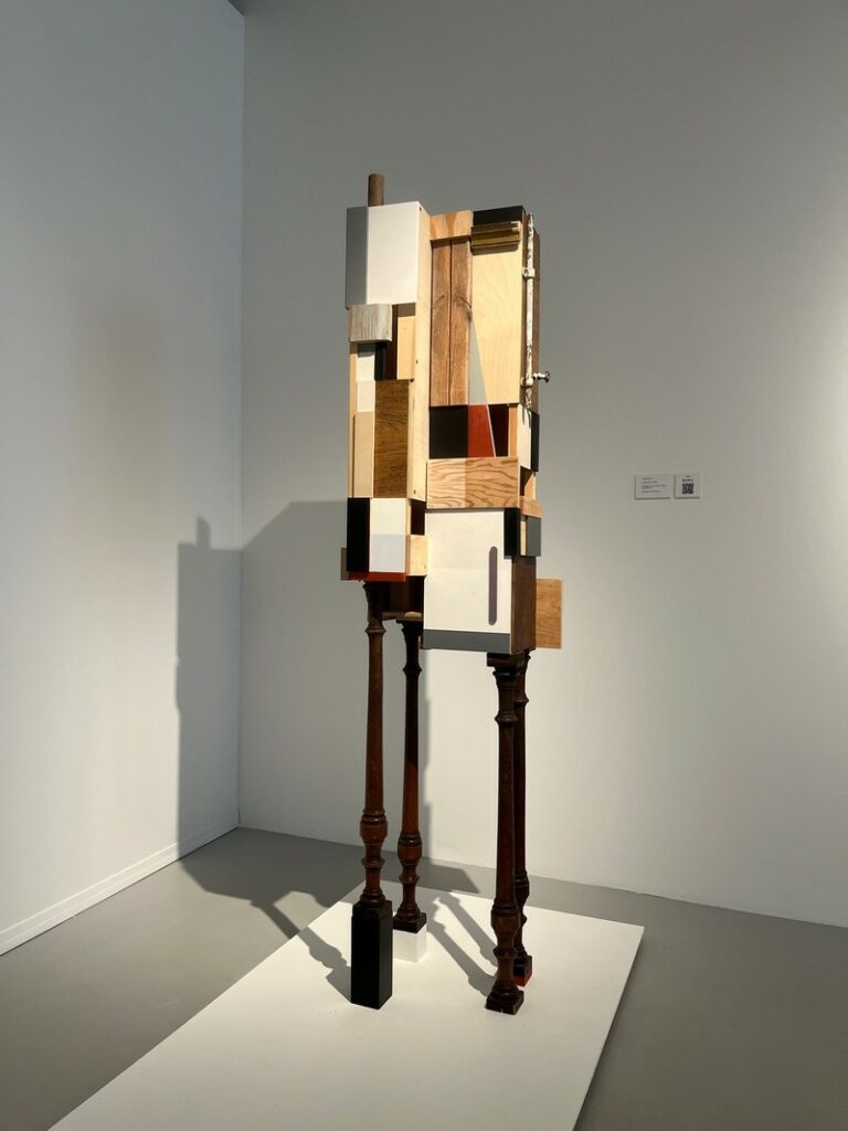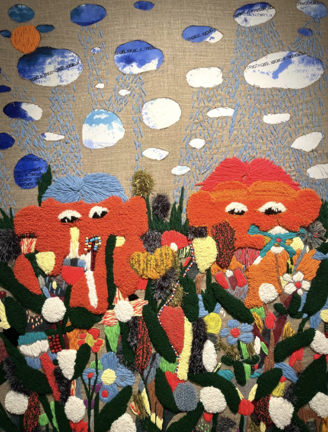 Фанера, скотч, акрил, найденные объекты, силикон, жостовский поднос, стразы, аэрозольная краска, ассамбляж, шелкогафия, вышивка. Материалы и техники становятся все разнообразнее с каждым увиденным объектом. Работы пестрят своей выразительностью на фоне минималистичных белых стен.