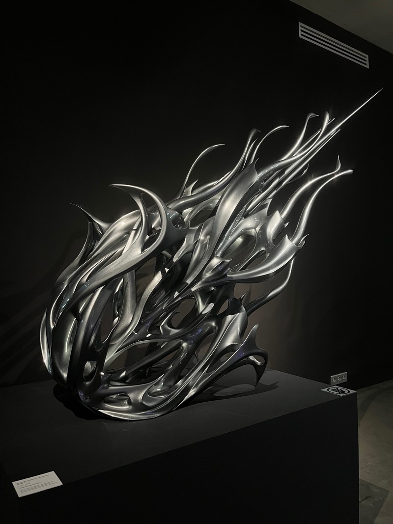 3D-печать, лазерная резка, сварка, фрезеровка. Благодаря этим процессам создан кинетический серебряный объект, напоминающий одновременно и живой организм, и космическое тело. Это работа Юлии Низамутдиновой (Julia Cyberflora) «Stellara». Она визуализирует «капсулу жизни», которая по одной из научных гипотез и принесла жизнь на планету, породив существ, родственных представленным на выставке.