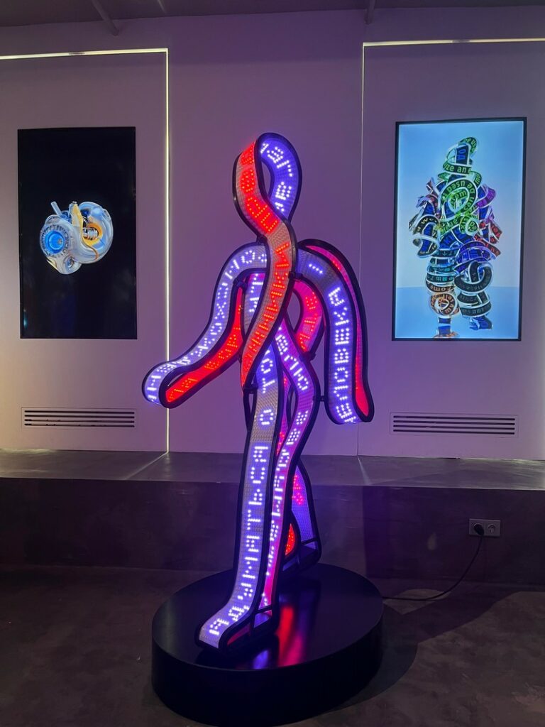 Открыв входную дверь галереи, сразу оказываешься в пространстве выставки, со всех сторон транслирующем нестандартное современное искусство. Изображения на экранах, как и физические объекты, движутся, магнетически действуя на посетителей, которые становятся не просто наблюдателями, а частью цифровой экосистемы.