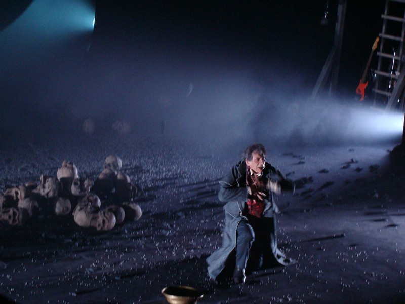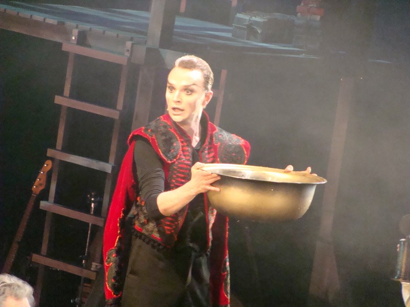 В какой-то момент при распределения ролей на сцене и возникает Мефистофель. Отличительная черта героя Владимира Логвинова – превозношение над всем и вся и постоянная критика в адрес людей и Земли. Мефистофель утверждает, что Фауст – создание жалкое, вечно недовольное, блуждающее во тьме. И предлагает, согласно произведению Гёте, пари самому богу: если ему удастся совратить Фауста, заставив его отказаться от вечного духовного поиска, то душа доктора достанется ему. Бог попускает эксперимент, поскольку уверен, что после череды заблуждений и падений Фауст окажется способным прозреть.