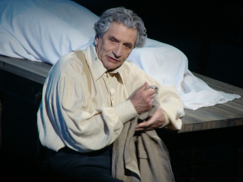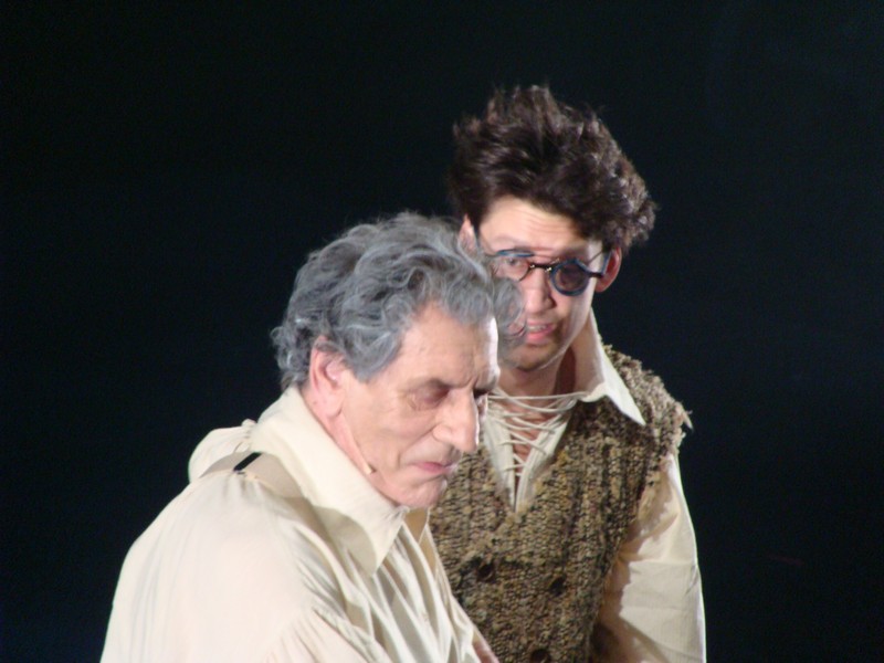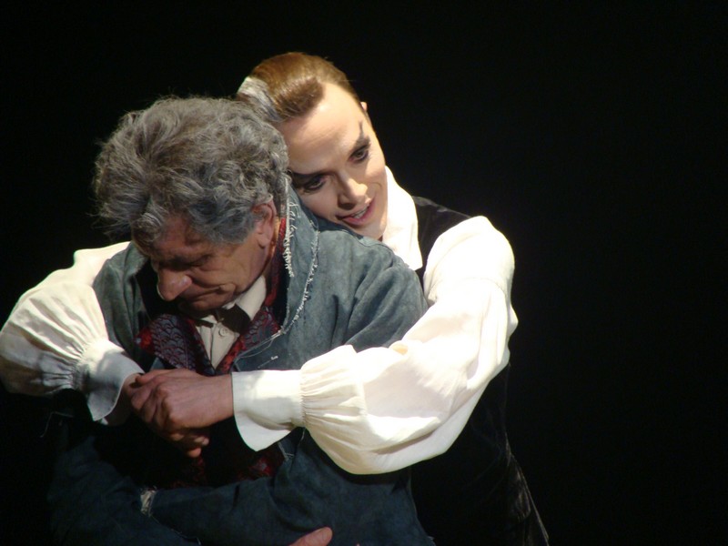 Роль Фауста отдана народному артисту Евгению Князеву, что сразу же повышает градус интереса к спектаклю. Мефистофеля играет молодой и талантливый Владимир Логвинов. Причем, изначально, заглядывая в программку, зрителю кажется, что артистам хорошо было поменяться местами: Князев был бы великолепным Мефистофелем! Но уже через пятнадцать минут после начала действия замысел режиссера становится понятным: фигура Фауста действительно требует не просто огромного актерского мастерства, но и серьезного жизненного опыта, приправленного зрелыми размышлениями о мироустройстве и возможности спасения души. Евгений Князев всем этим, безусловно, обладает.