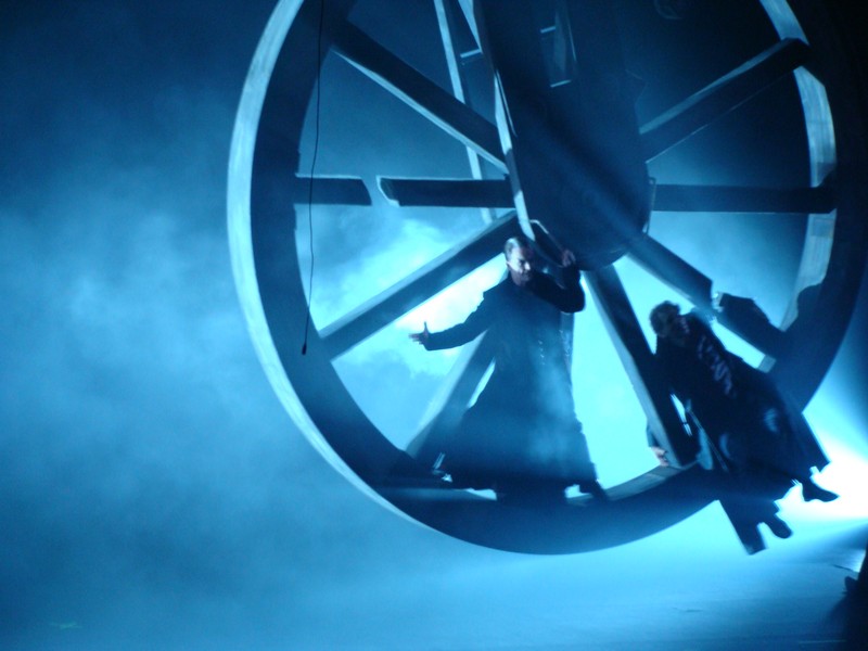 Художник Фемистоклас Атмадзас соорудил на сцене гигантский маятник в форме колеса. Колесо, раскачивающееся на уровне задника, прозрачно намекающее на быстротечность человеческой жизни. Жизни, в которой надо определиться с ее смыслом и что-то успеть сделать в заданном направлении.