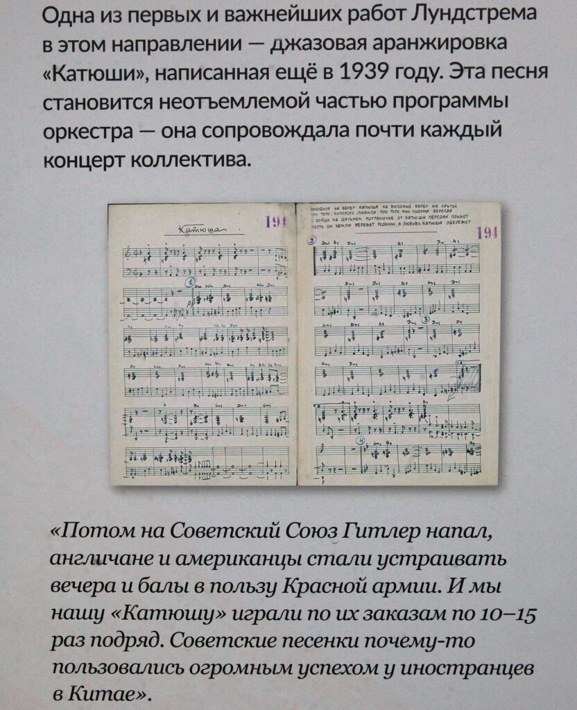 «Однажды в Харбине я зашел в магазин грампластинок за новинками модного тогда фокстрота. И что вы думаете, купленная мной пластинка с записью никому еще не известного оркестра американца Дюка Эллингтона «Дорогой старый Юг» перевернула мою жизнь. Было это в 1934 году. Я заболел Эллингтоном. Захотелось создать нечто подобно-коллективное, – писал музыкант, – это не просто музыка для танцев, а какое-то потрясение!» Кстати, в начале 1970-х годов Лундстрему посчастливилось познакомиться с кумиром.
