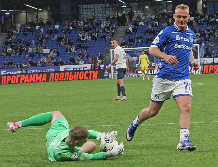РПЛ. 23-й тур. «Динамо» (Москва) 3:3 «Оренбург». Голы: Муфи, 30 (автогол), Тюкавин, 39, 61 – Муфи, 45+2, Ду Кейрос, 51, 66.