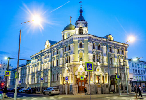 Архитектурная подсветка украсила подворье Валаамского Спасо-Преображенского монастыря в Москве