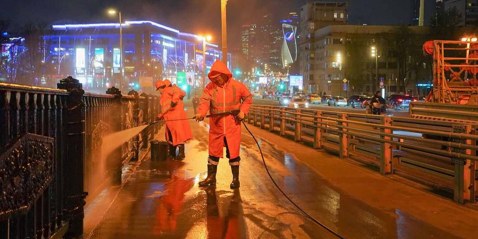 В четверг поздно вечером промыли Бородинский мост, который соединяет Смоленскую улицу с Большой Дорогомиловской улицей. За сутки через него проходит более ста тысяч машин. Поэтому для работ выбрали позднее время — промывка началась в 22.00. И движение автомобилей и пешеходов во время работ не ограничивали.