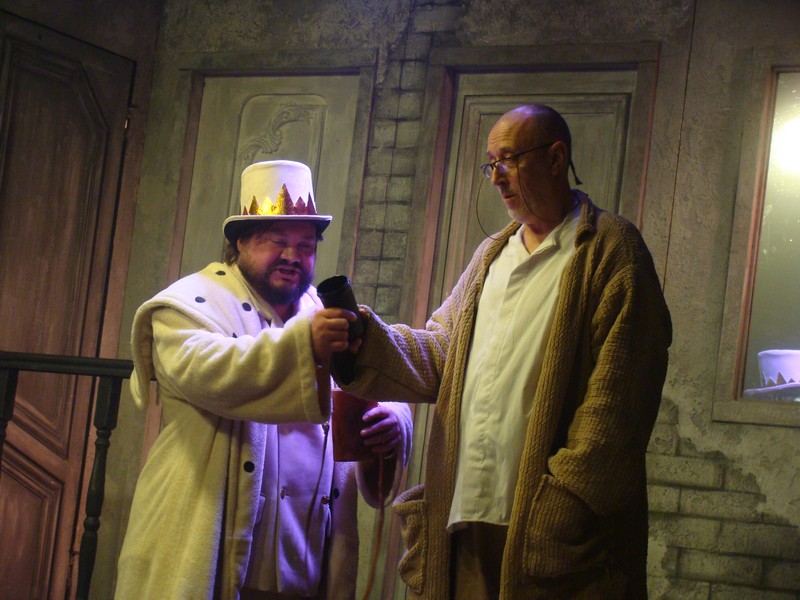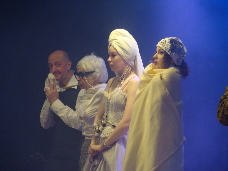 Перед зрителем (сюжет знакомой истории пересказывать, конечно, нет смыла) проплывают лики, порожденные писательским воображением: матовая бледность лица нежной принцессы (Мария Савицкая), непобежденная тоска Медведя (Игорь Михмель), превозносящийся взгляд министра-администратора (Антон Белов), тяжелая мрачность юмора Палача (Артур Хачатрян), нервная острота движений Придворной Дамы (Карина Дымонт), скрытая драма мудрого Трактирщика (Евгений Бакалов), восторженно-неприкаянная энергетика Короля (Денис Шалаев), приспособленческая «честность» Первого Министра ( Андрей Санников ), комедийная однолинейность Оринтии (Елена Лунцова) и Аманды (Людмила Лазарева), трусливая озабоченность Охотника ( Олег Здорин), подавляемая порывистость Ученика (Егор Базанов).
