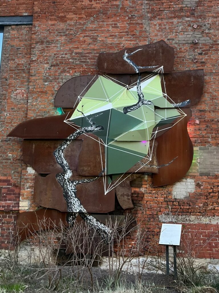 В больших количествах стрит-арт встречается в московских креативных пространствах, которые возникли на месте старых заводов и фабрик. Одно из них – дизайн-завод «Флакон», появившийся на территории бывшего Хрустального завода имени Калинина. Граффити в этой современной среде, где гуляет и фотографируется по большей части молодежь, – неотъемлемая часть места. Его сложно представить без самобытности, творчества и креативного мышления. Здесь стены зданий не только расписывают. Художники делают скульптуры – «Железный бонсай», созданный в коллаборации пяти участников: Макс Ломах, Иван АСТРО, Никита Бигги, LUCH и FLOWGARDENZ.