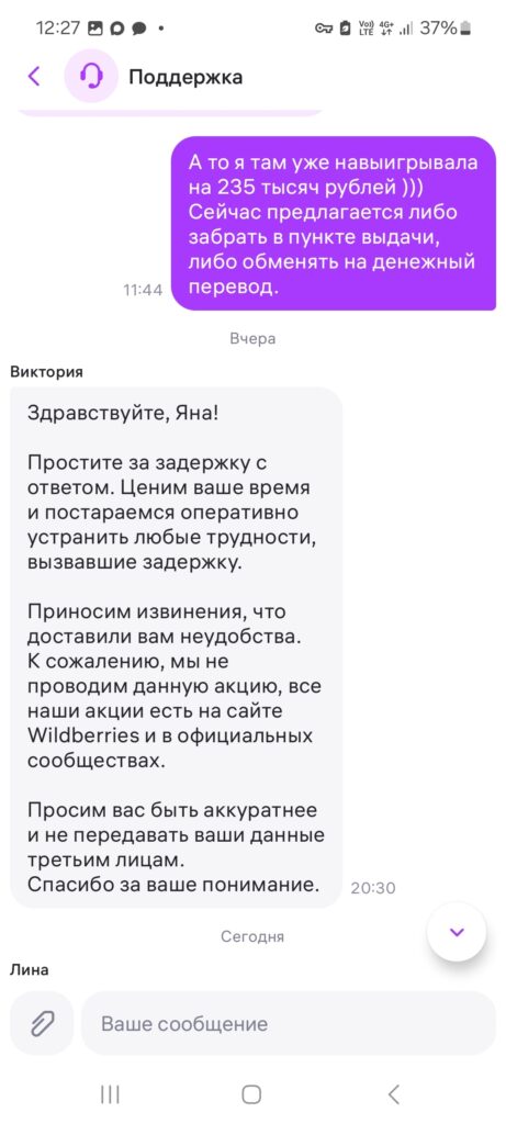 Вместо этого я открыла приложение реального маркетплейса и задала вопрос: проводится ли у вас такая акция?