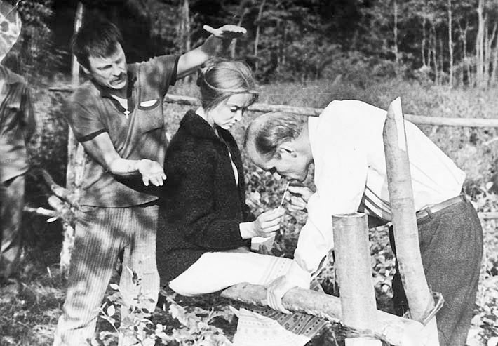 Мать Тарковского, Мария Ивановна Вишнякова, присутствовала на съемках, отец тоже, и я спрашивала их обо всем, даже о глубоко личном. Например, подхожу к матери Андрея, сидящей на стуле в своем пончо, задаю ей вопрос: «Мария Ивановна, Арсений Александрович говорит, что хотел к Вам вернуться?..» (Этот разговор происходил в 1974 году, а отец от них ушел в 1937-м). Мария Ивановна пожимает худенькими плечами: «В первый раз об этом слышу». Я – к Арсению Александровичу за объяснениями… Он: «Ну, у нее такой характер!»