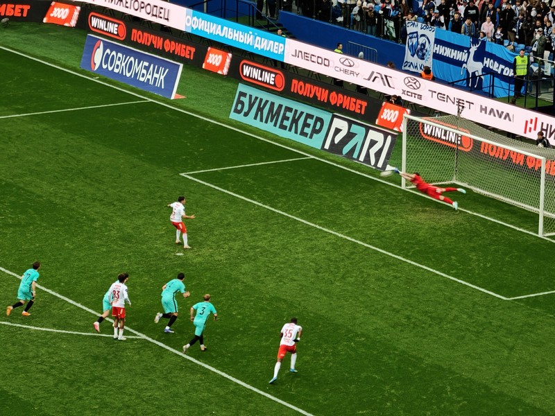 После перерыва подопечные Карседо увеличили давление на хозяев, и это принесло результат. Все тот же Барко геометрически верно отдал проникающую передачу на Зобнина. Роман развернулся, сместился в центр и пробил – мяч рикошетом от защитника влетел в ворота Медведева. Почти 18 тысяч болельщиков гнали своих на ворота московской команды, но «Спартак» выстоял, одержал волевую победу и увез из Нижнего Новгорода полновесные три очка.
