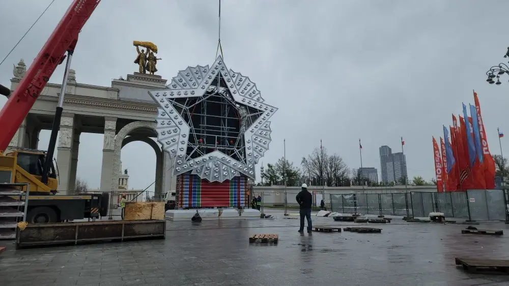 На ВДНХ, площади Дорогомиловская Застава и Триумфальной площади появятся целые ансамбли из флагов и 11-метрового ордена «Победа». Возле здания Минобороны России на Фрунзенской набережной разместят декоративные конструкции «Звезда Победы» и «Салют Победы», а на его фасаде – элементы с обозначением годов войны.