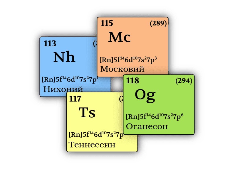 Международный союз чистой и прикладной химии (IUPAC) утвердил названия и символы четырех элементов: нихоний (Nh), московий (Mc), теннессин (Ts) и оганесон (Og) для элементов 113,...