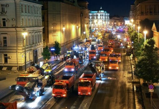 На 1-й Тверской-Ямской улице и участке Тверской улицы приступили к укладке нового асфальта