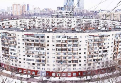 На улице Довженко есть знаменитый «круглый дом», построенный в 1976 году. Это огромное, диаметром 155 метров, кольцо с 26 подъездами и сквером внутри. В доме...